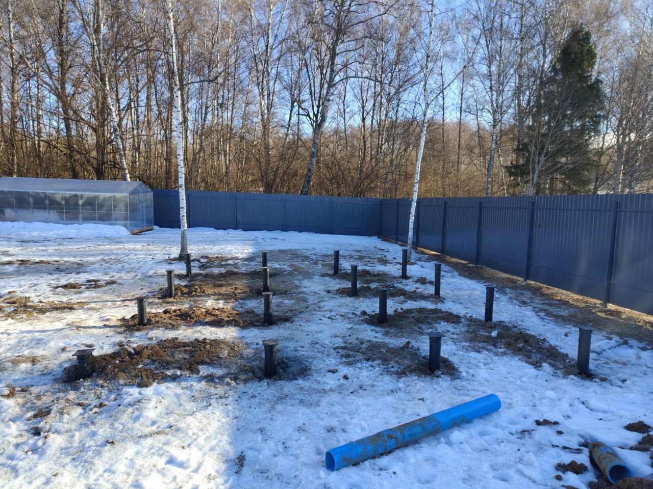 —Свайно-винтовой фундамент 16 свай для бани из бруса